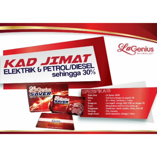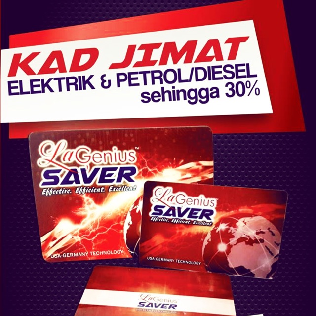 KELEBIHAN KAD AJAIB - JIMAT MINYAK JIMAT ELEKTRIK LAGENIUS SAVER Inovasi baru dan. Boleh jimat hingga 30. KAD JIMAT LA GENIUS Jimatkan bil elektrik rumah kilang kedai anda hanya dengan lekatkan KAD.