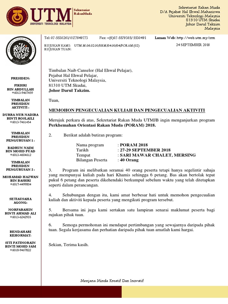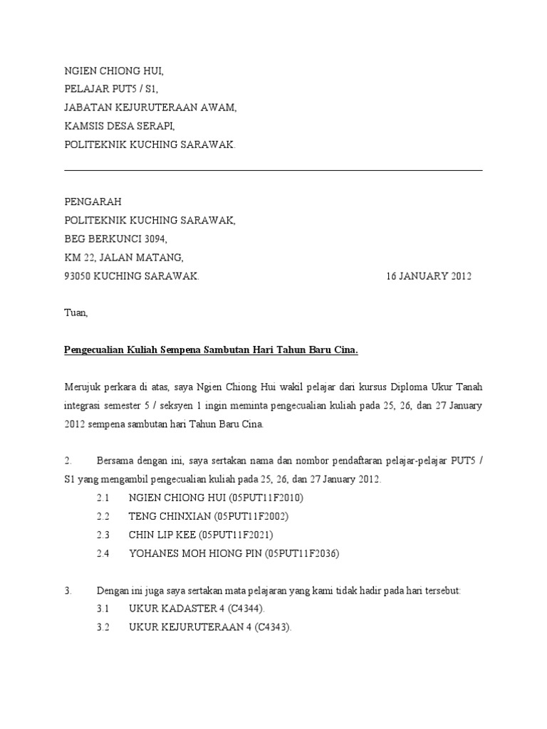 Surat Permohonan Pengecualian Kuliah Pdf